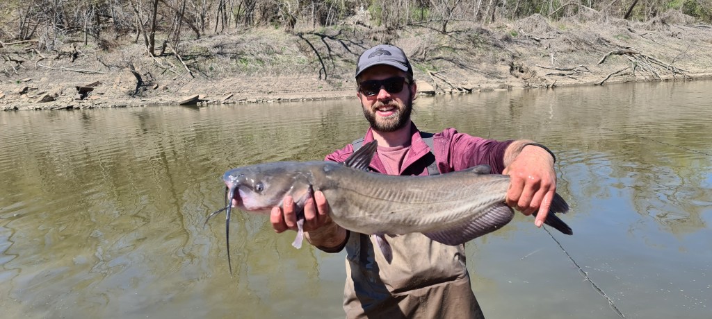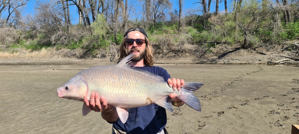 Hi, I’m Austin, a master’s student here at ESU. My research looks at the impact of invasive carp (think the videos of hundreds of fish jumping at/onto boats) and how they affect food webs/resident fish of the Kansas River through stable isotopes- a “you are what you eat” approach.