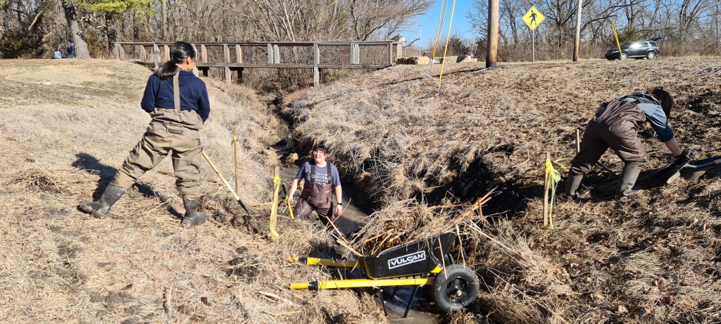 As a restoration measure to a heavily eroded stream, sinuosity will be increased with the addition of beaver dam analogues to introduce a meander in a 150-meter stretch of a first order stream. To help stabilize the riparian zone and decrease erosion into the stream, native plants will be planted in the riparian zone as well as the addition of a zuni bowl waterfall feature. These changes lead directly into our restoration goals: