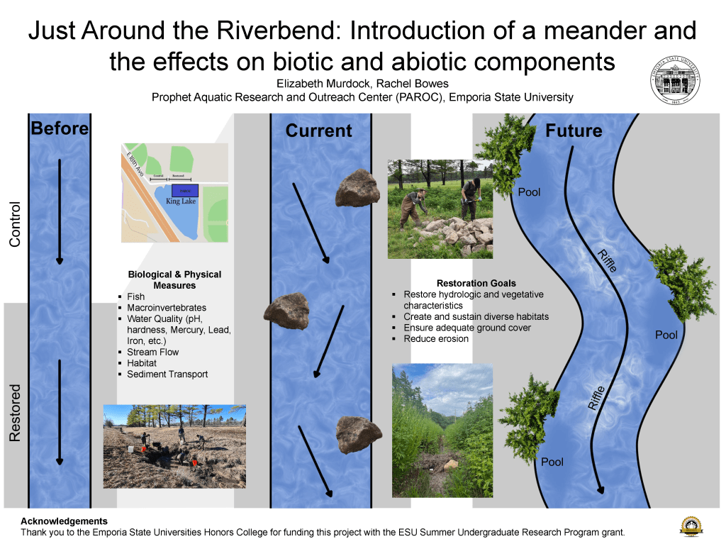 Monitoring Objectives: Evaluate whether added sinuosity (introduced meander) decreased sediment input, decreased stream flow, and recolonize stream community.